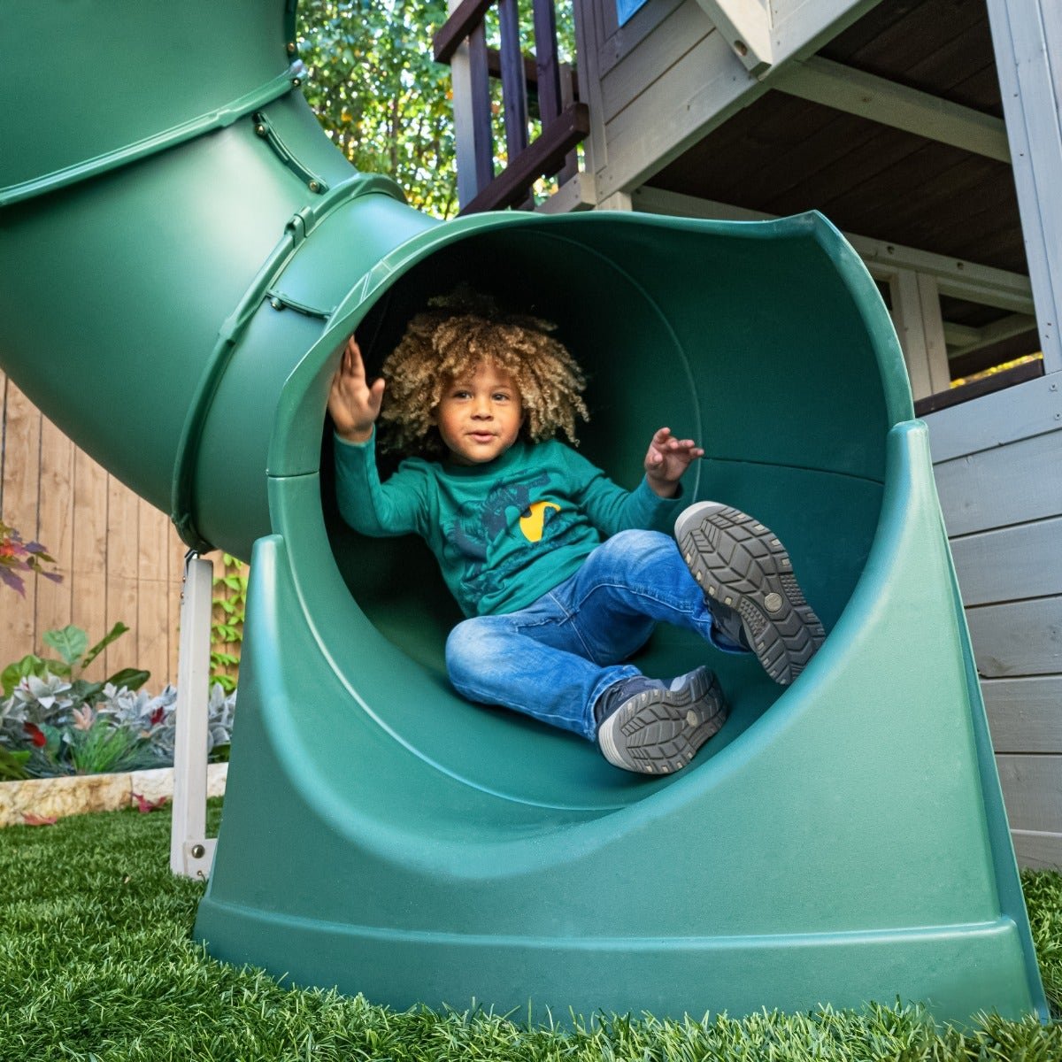 - 12′ Twist N Ride tube slide for a thrilling ride
