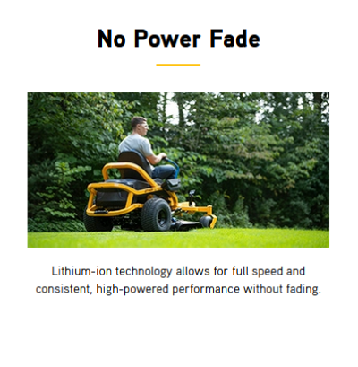 - Mow up to two acres on a single charge without power fade. Recharges in about 4 hours