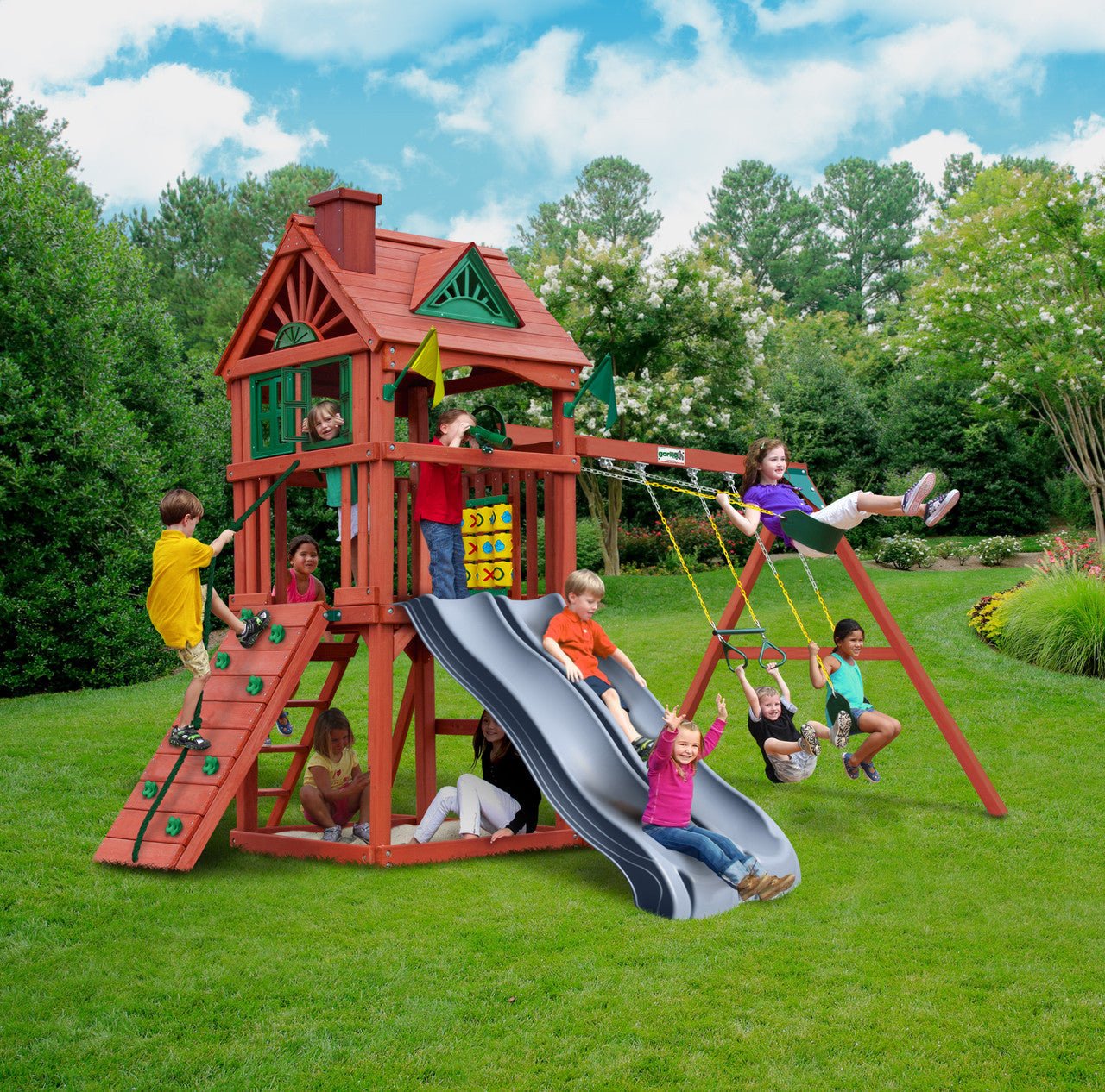 Your kids will have a blast with the Gorilla Playsets Double Down II Swing Set in the yard! This set has two Alpine Wave Slides™, a large deck, a rock wall and even a flag kit! With many more accessories, this set has it all! Let the fun begin, order yours today!
