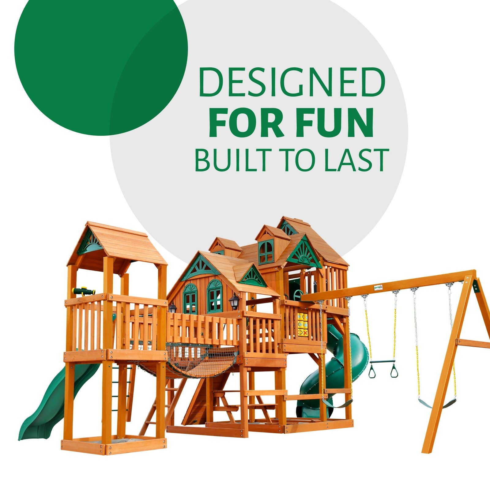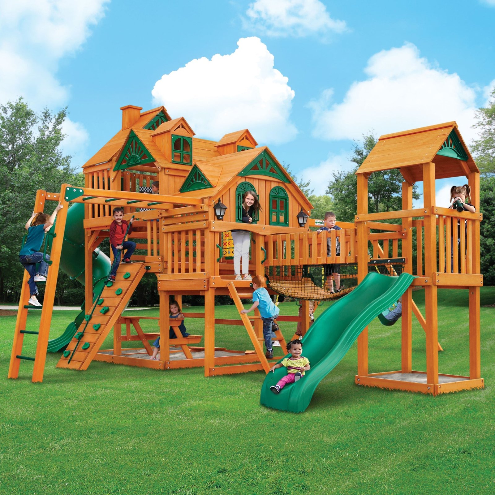 You can’t be called Elite without having a ton to offer! The Everest Elite gives your kids three play decks, two slides, a rock wall, monkey bars, a clatter bridge and tower and so much more! Play time is just a hop, skip and a jump away!