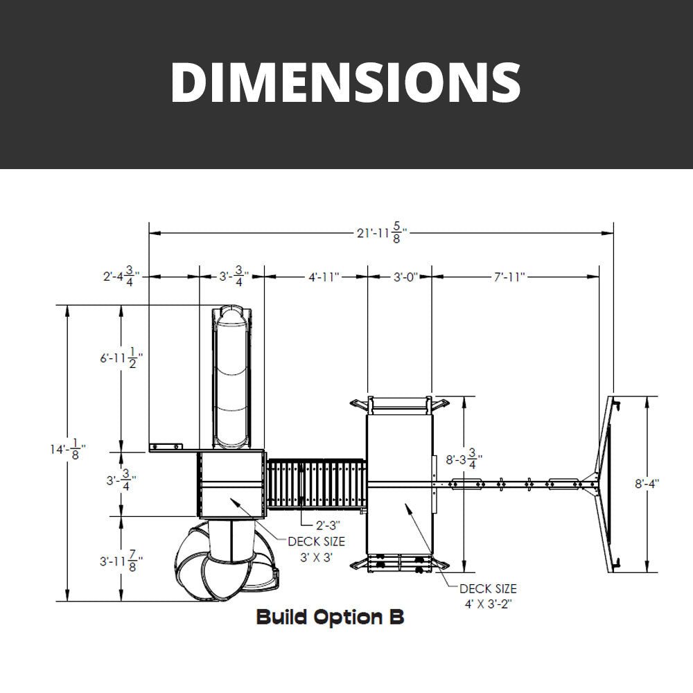 The High Point Deluxe swing set takes your backyard adventures to new heights, offering endless fun and excitement for kids. This exceptional playset goes beyond being a mere addition to your play space; it serves as a portal to imagination and physical activity. With two towers, one featuring a 5ft play deck and the other a 4ft play deck connected by a Clatter Bridge, the High Point Deluxe provides plenty of room for creativity and play. Easy access to the fun is ensured by the sturdy Rock Wall with Climbing Rope and the spacious entry ladder.