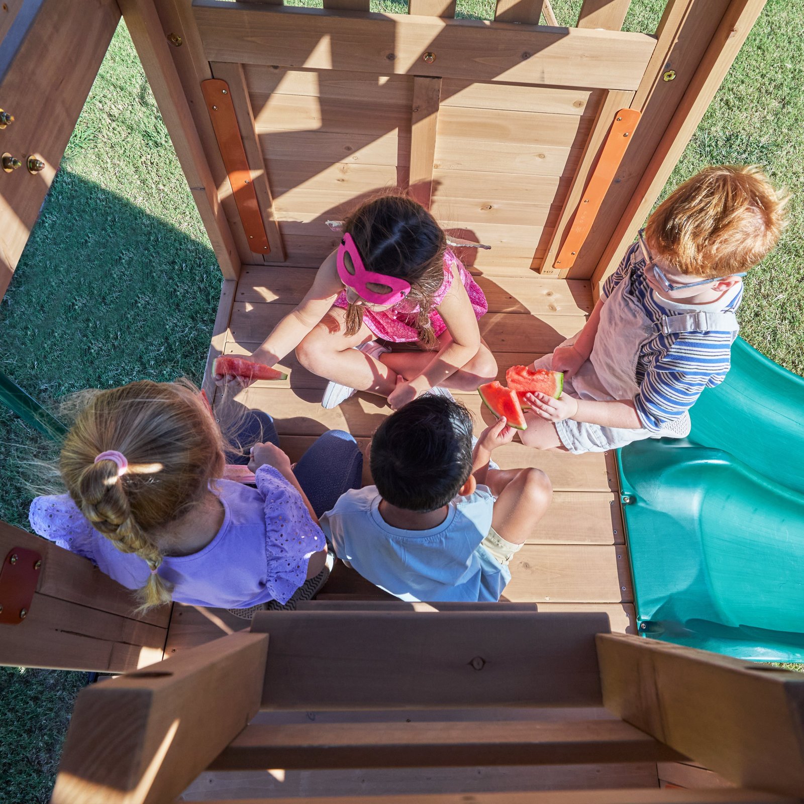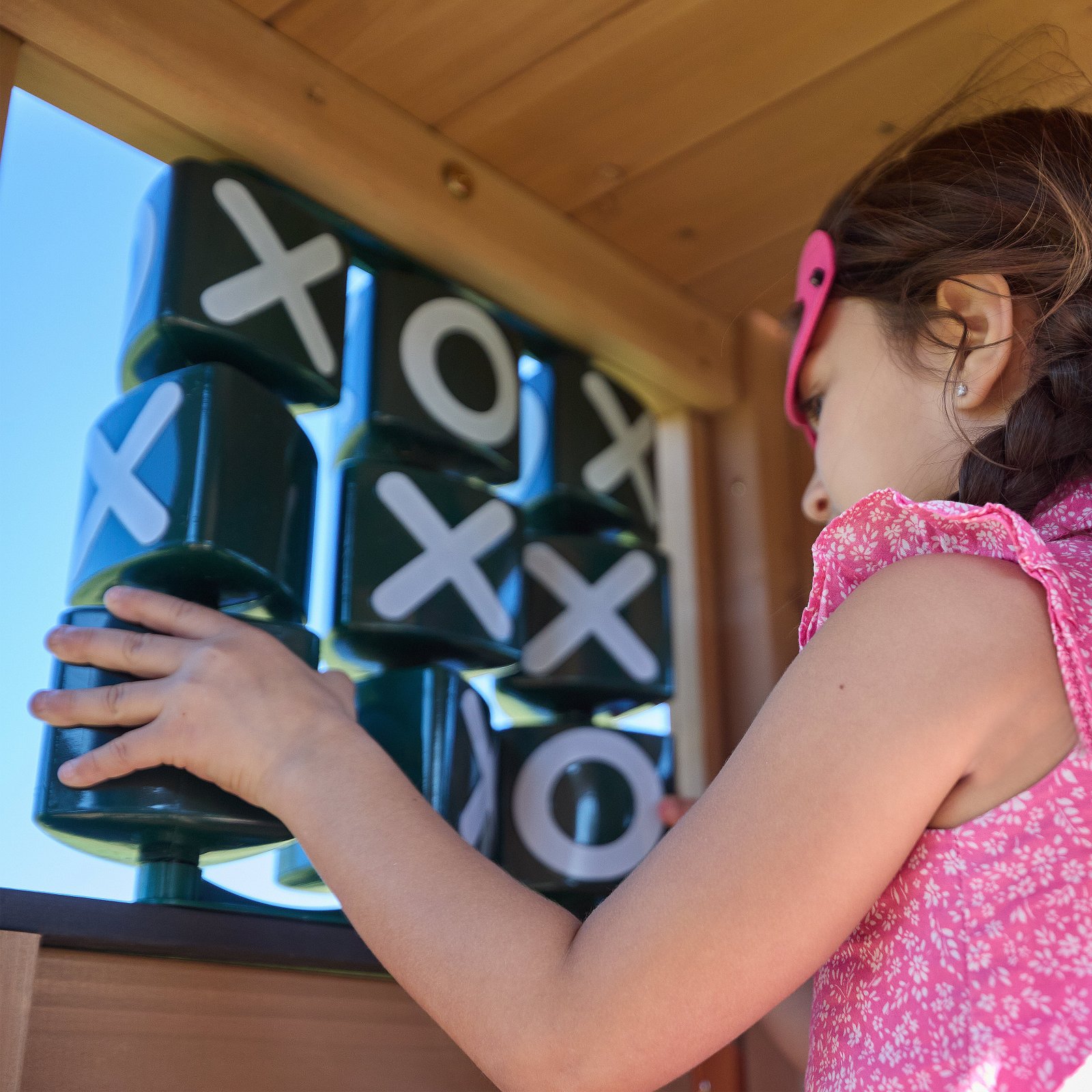 - Upper clubhouse with a tic-tac-toe game, telescope and thrilling crow’s nest