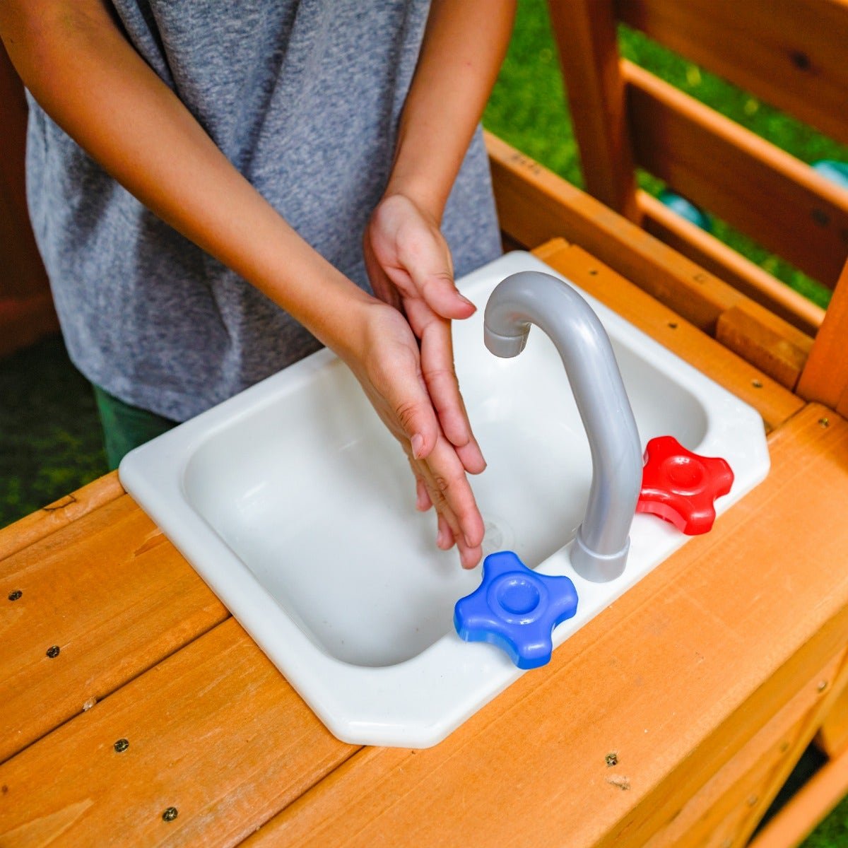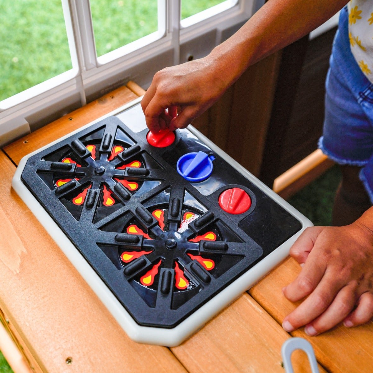 - Two-story playhouse with door and role play kitchen with accessories