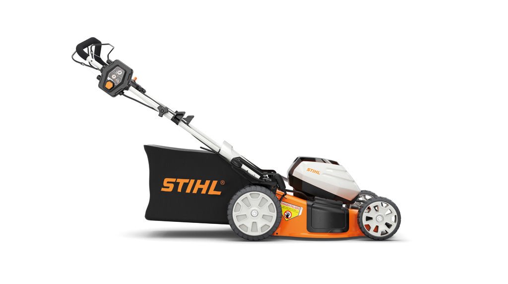The STIHL RMA 460 V is the first self-propelled lawn mower in the AK System. Allowing for self-propelling speeds from 0.6 mph to 2.8 mph with the slide of a lever, the RMA 460 V provides smooth and convenient operation that adjusts to conserve energy and optimize run time. With a 19” steel mowing deck and a 15.85-gallon grass bag, homeowners can enjoy a wide cutting path and the ability to minimize stops needed for emptying. A great fit for small to midsize yards, the RMA 460 V conserves battery and extends run time by automatically reducing power when mowing through light grass and increasing power in taller or thicker grass.