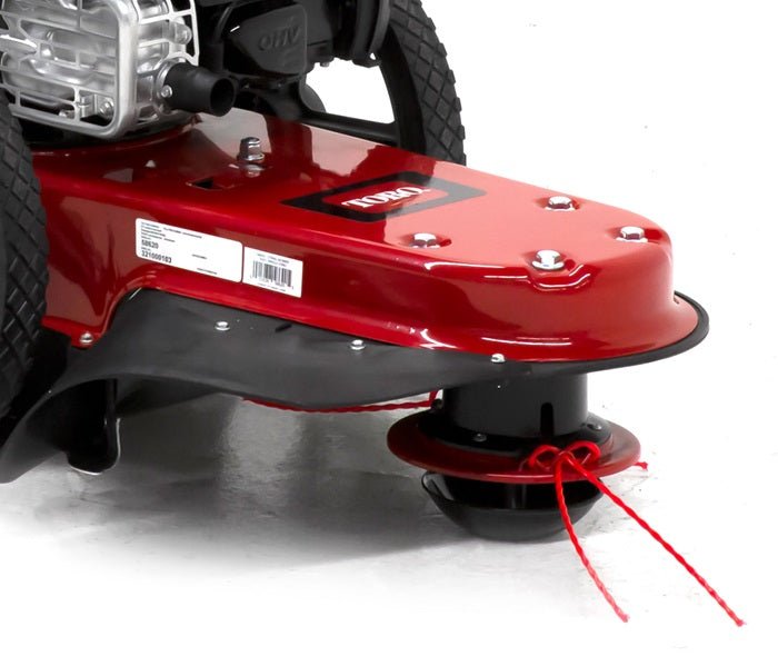Powered by a strong, yet quiet, 163cc 4-Cycle Briggs and Stratton engine. The Toro walk behind string mower chops down unsightly weeds and stubborn brush with ease.