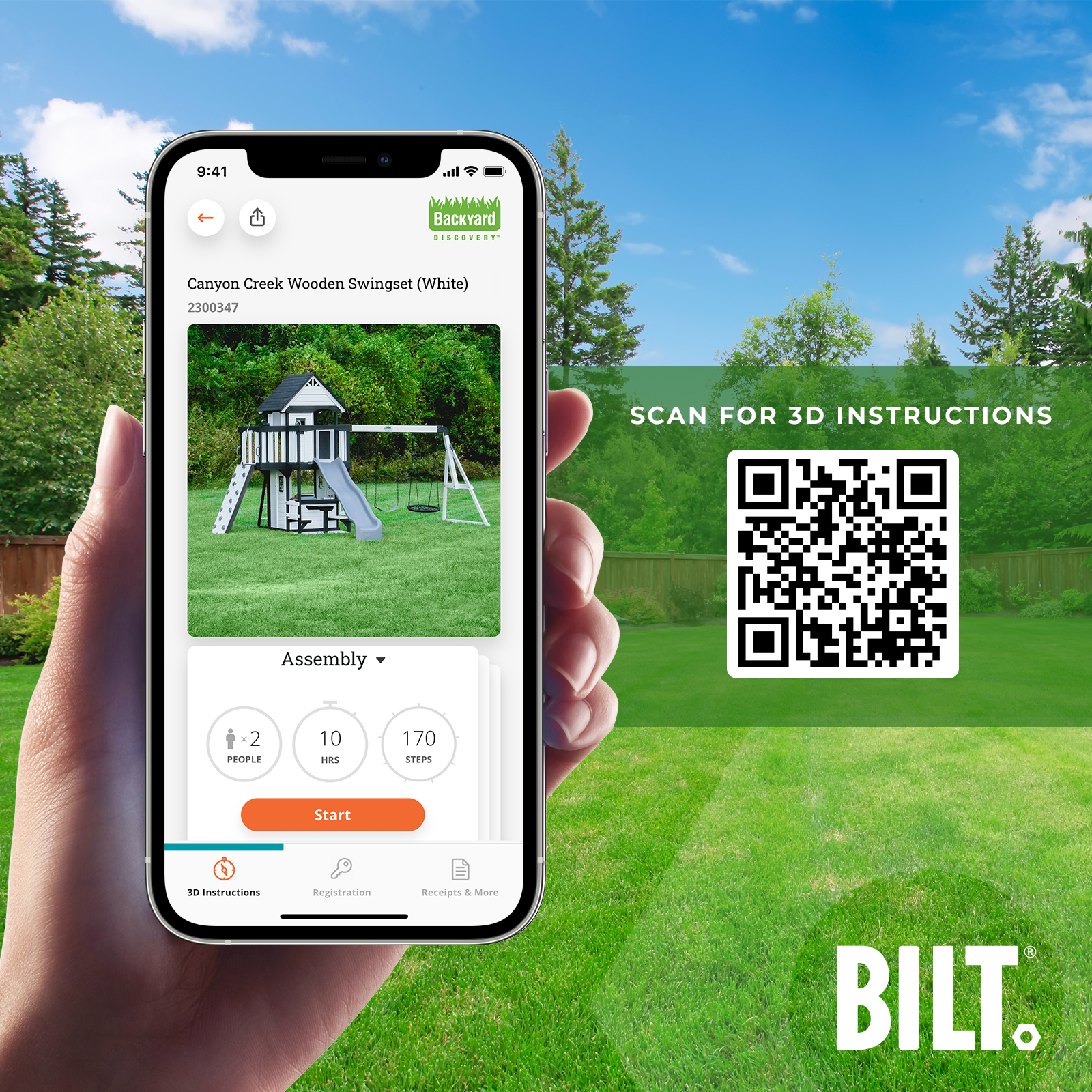 Embark on backyard adventures with the Canyon Creek Swing Set by Backyard Discovery. This charming wooden swing set boasts a variety of features that inspire active outdoor play. The towering rock wall invites daring climbing challenges, while the 8-foot speedy wave slide offers thrilling rides back to the ground. Kids can soar on the exciting web swing or enjoy traditional swinging fun on two comfortable belt swings. Access to the upper clubhouse is a breeze thanks to the flat-step ladder, providing easy entry for children of various ages. Imaginations will take flight in the different play spaces. The charming lower playhouse transforms into a fun bustling café with its a toy BBQ grill, sink, and play food for creative cooking adventures. Little chefs can serve up their culinary creations in the picnic area complete with a built-in table and seating. Meanwhile, the upper clubhouse becomes a command center with its toy telescope, chalkboard, and steering wheel, perfect for make-believe expeditions. Crafted from durable cedar wood, this backyard swing set is ready to assemble and offers guided instructions with the interactive BILT® app. Explore the Canyon Creek and create a backyard playground that brings new possibilities for playful discovery every day.