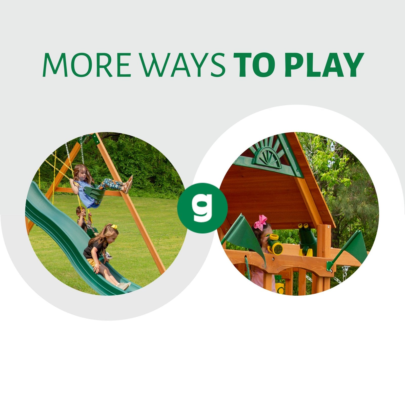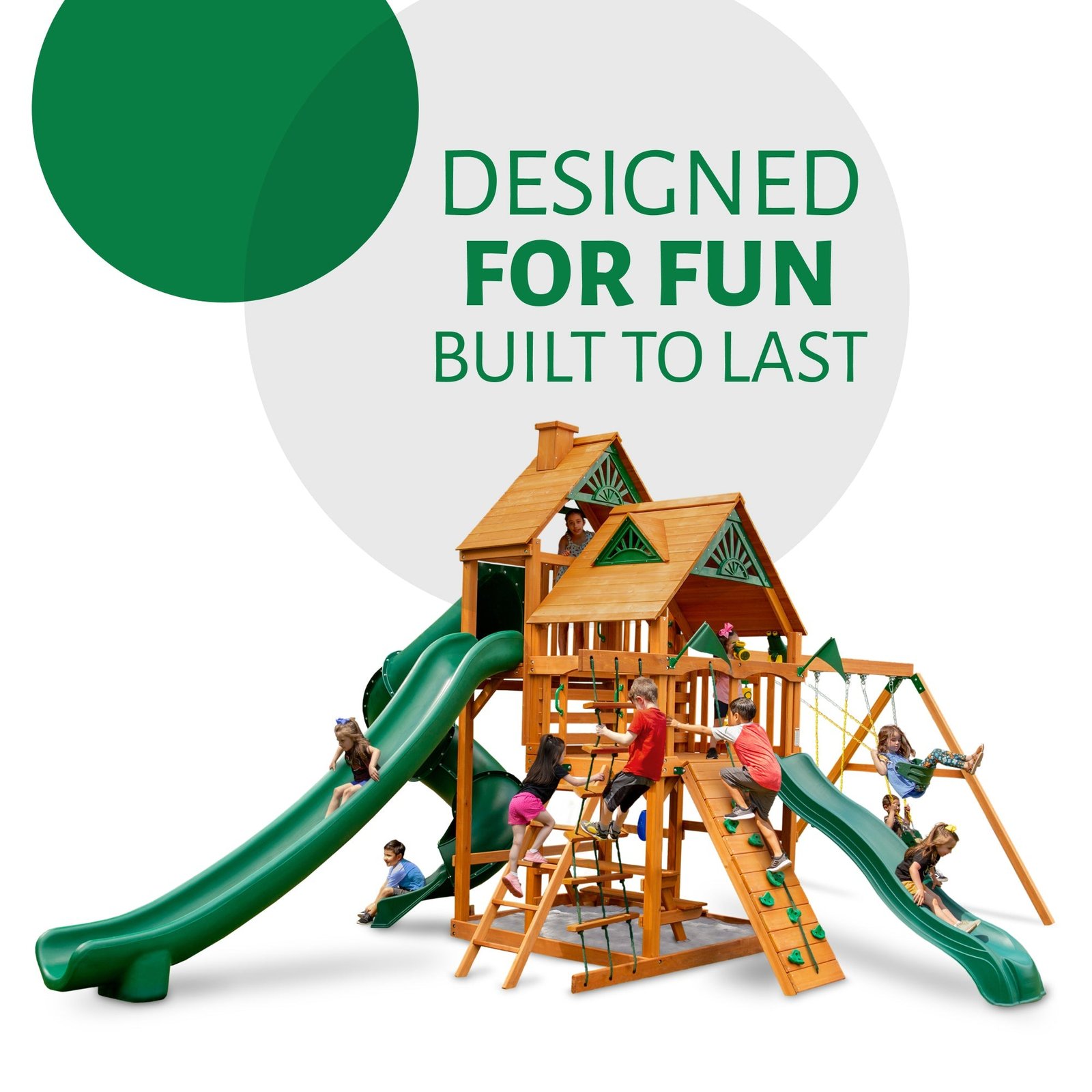 Sometimes you just have to get away from it all. With the Wilderness Retreat from Gorilla Playsets, it’s now easier than ever! This set includes multiple play decks with more room to play, three slides for going extra fast and all the accessories your kids could want. Let the fun begin, order yours today